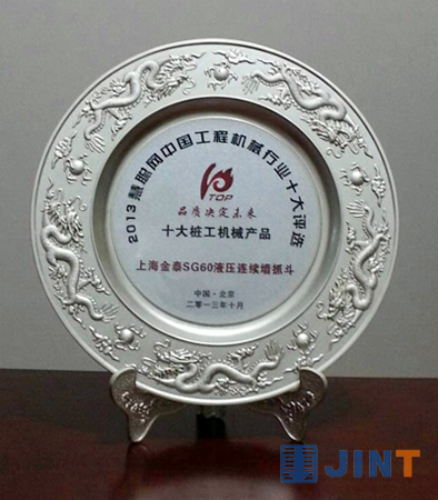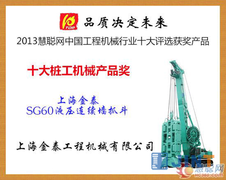上海金泰SG60液压连续墙抓斗荣登2013年中国工程机械行业十大评选活动的“十大桩工机械安博在线登录官网”榜单。