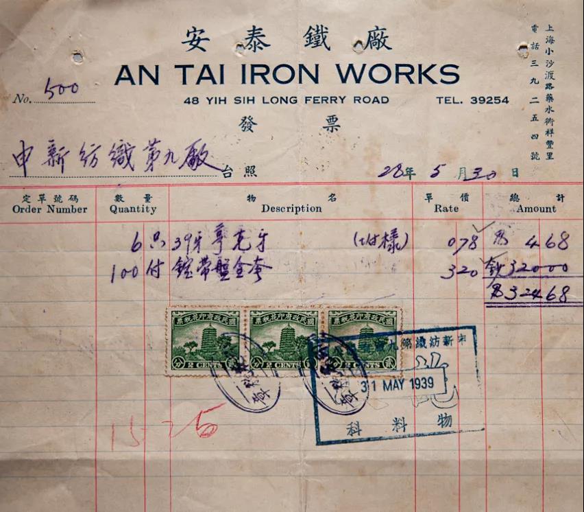 (30年代安泰铁厂销售发票)