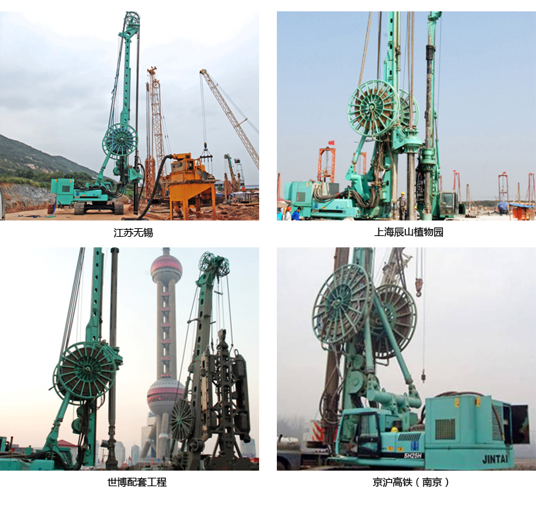 SH系列 液压风动冲击钻机是一种以钻进基岩为主的新型桩基础施工设备。该设备集旋挖钻机、潜孔锤、液压连续墙抓斗的技术优点于一身,整体工艺性能优越,孔底冲击破碎,正反循环排渣,实现大断面硬质岩层的连续快速钻进。另外,该主机可方便地进行冲击、旋挖和长螺旋钻进的功能切换。